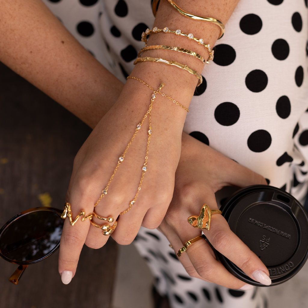 Desenhamos nossas peças com um processo manual. Pensamos em cada detalhe, cada matéria prima usada, cada pedra, para que quando sua cliente vista, sinta-se a mulher mais incrível do mundo e faça os olhos brilharem.