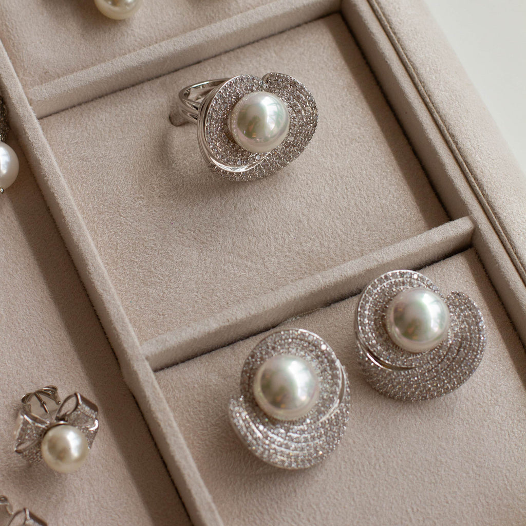 Anel Esther Flor Cravejada Com Pérola