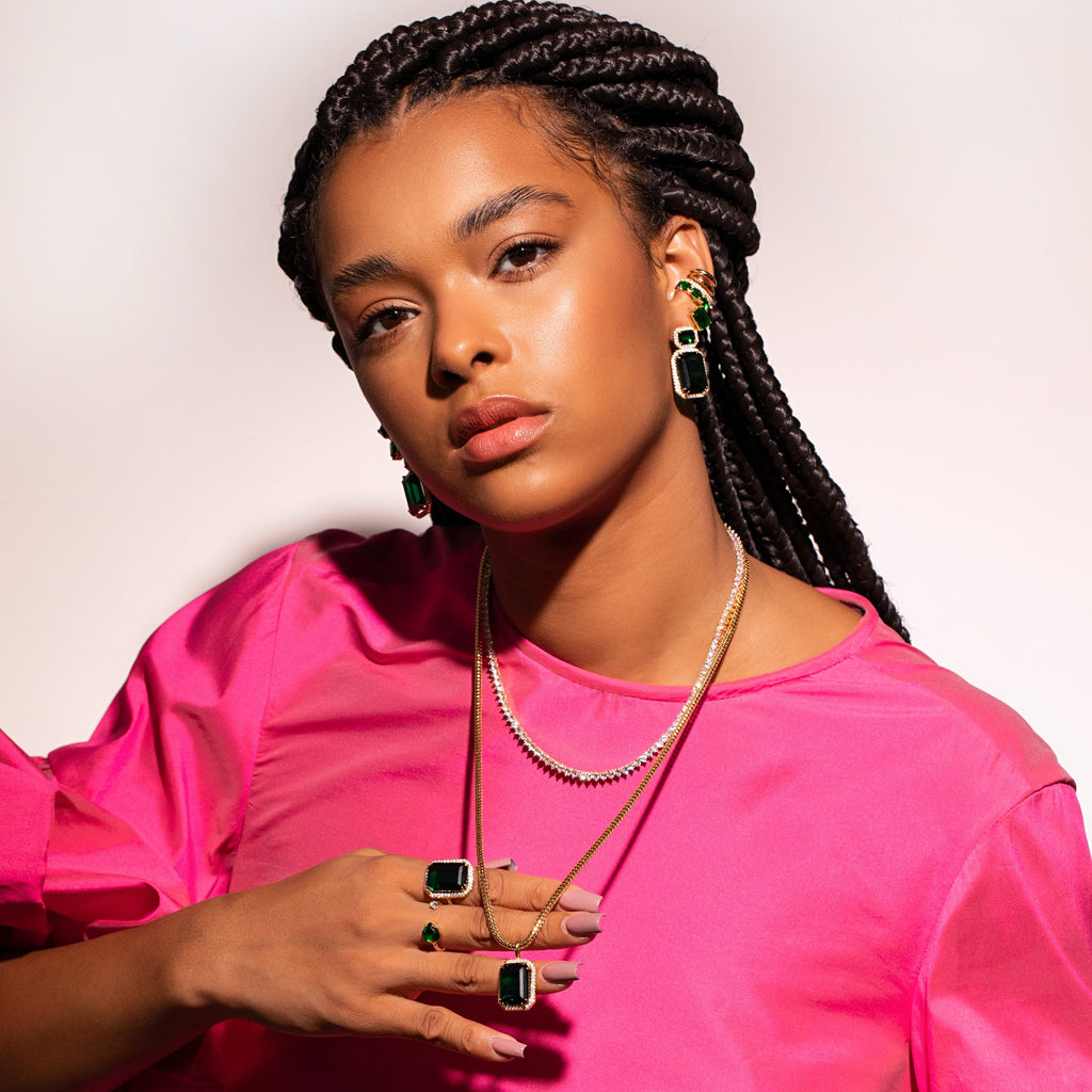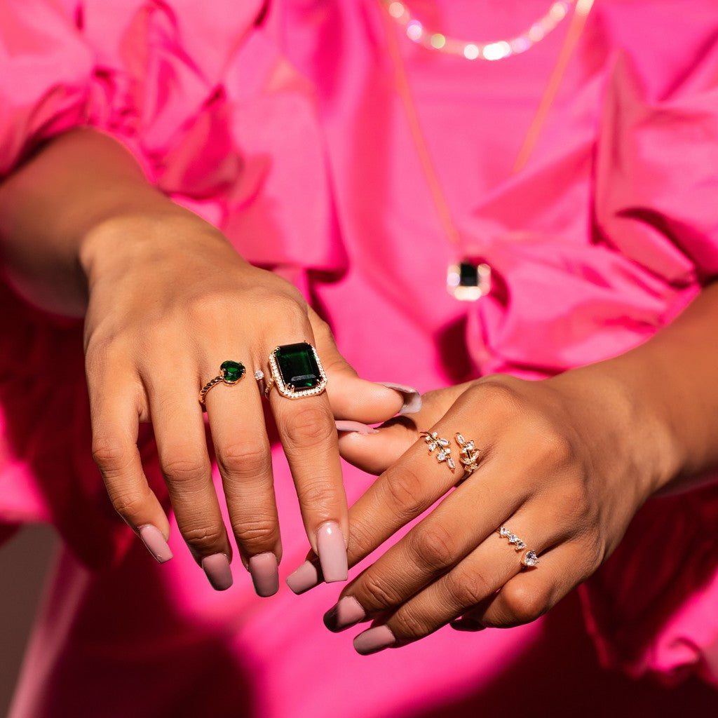 Anel Octógono Grande Cravado em Volta