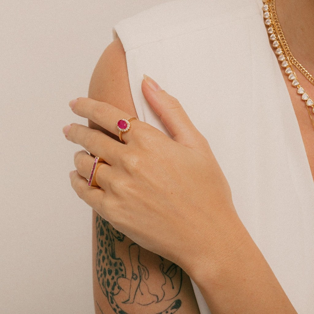 Anel Oval Fusion Cravado Em Volta 8x6mm
