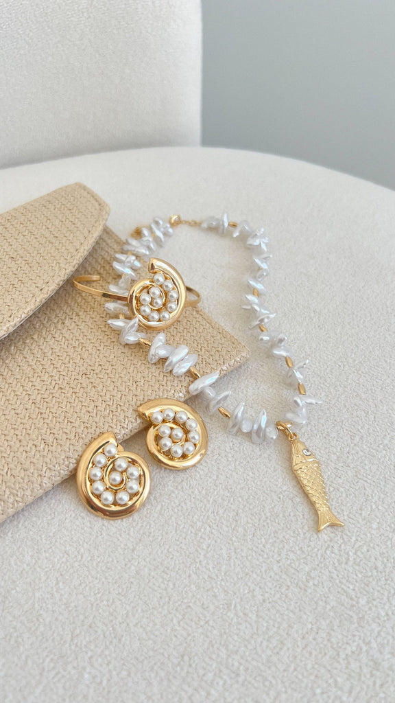 Bracelete Concha Caracol De Pérolas - está em espera e será enviado assim que estiver de volta em estoque
