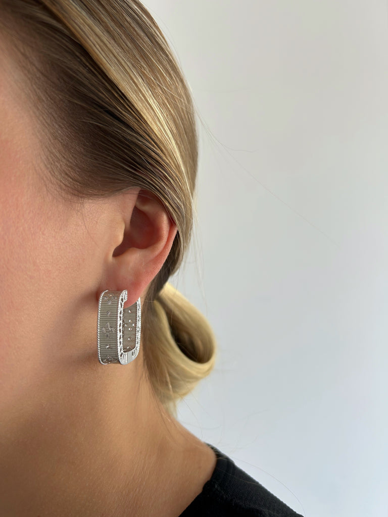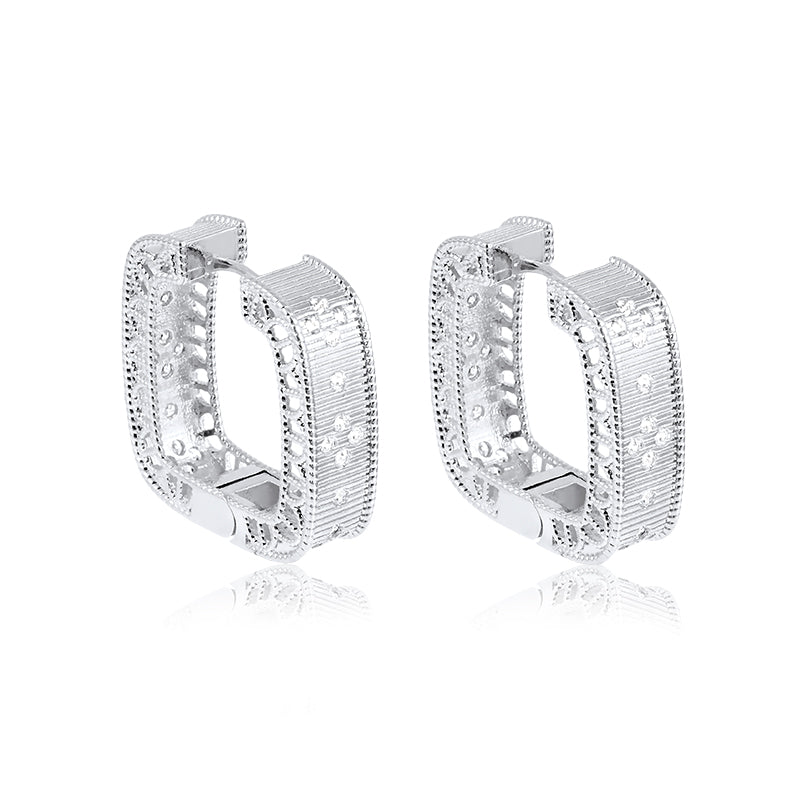 Brinco Argola Quadrada Trevo Trabalhado Lateral