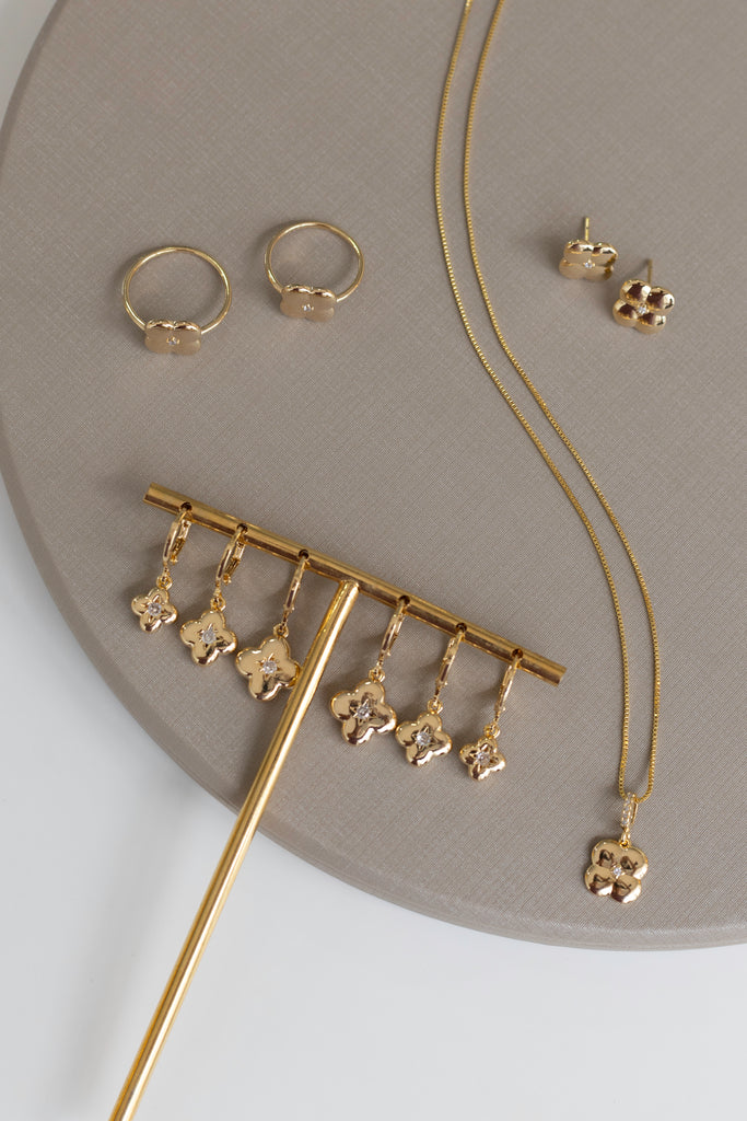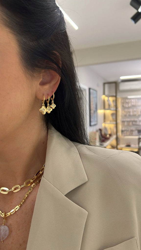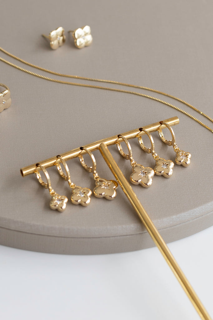 Brinco Argolinha Trevo Liso Com Ponto De Luz - G