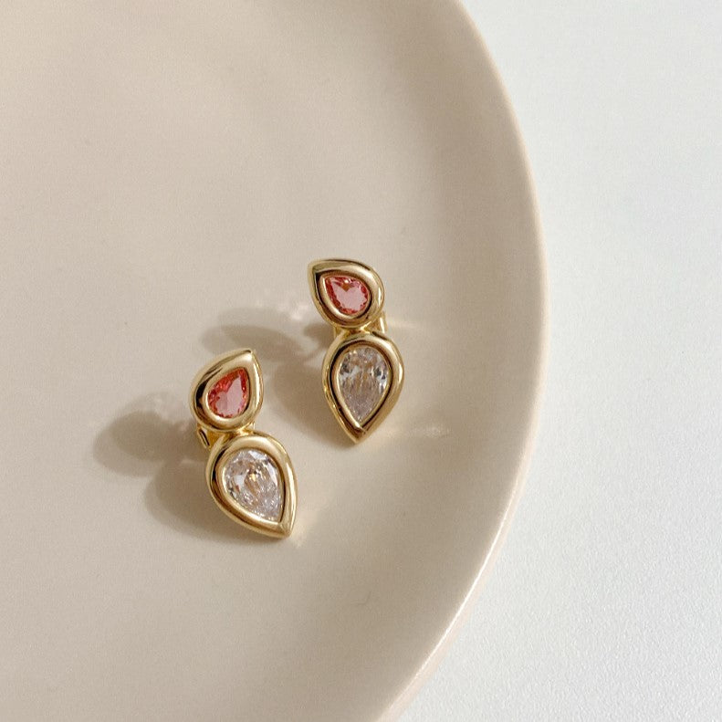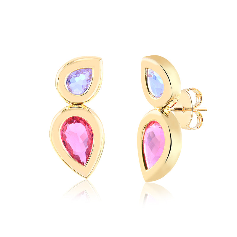 Brinco Duas Gotas Invertidas Cravação Inglesa