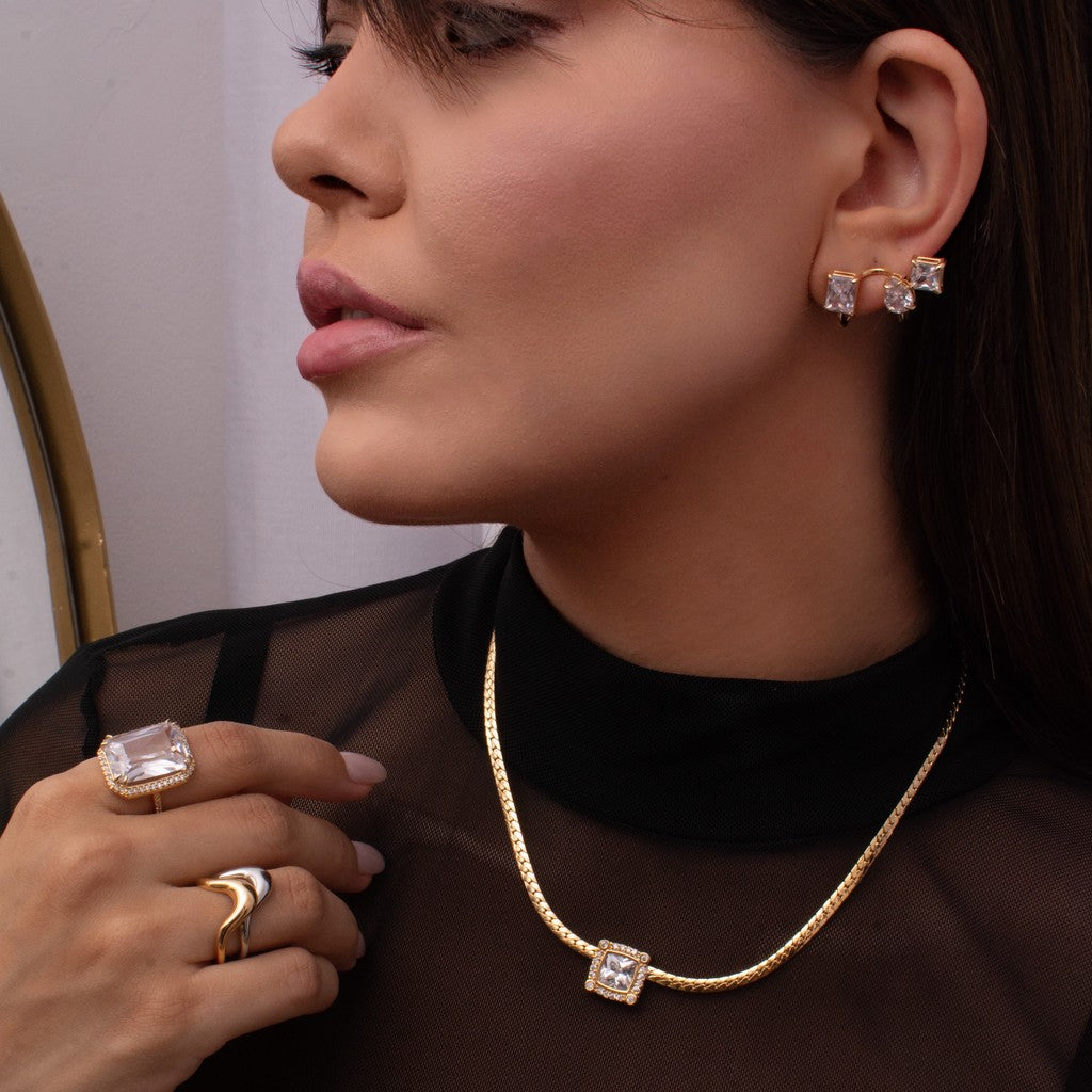 Brinco Ear Cuff Envolvente Octógono Gota Carre
