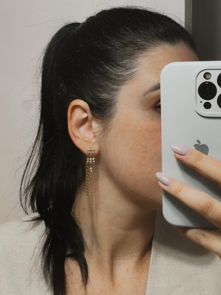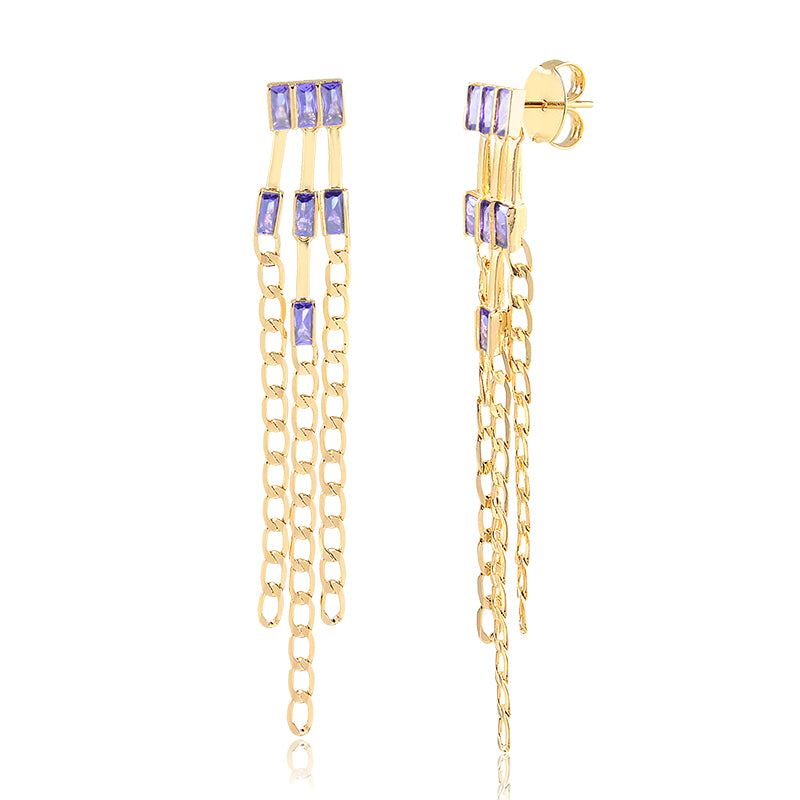 Brinco Longo Trio Baguetes Franja Corrente - está em espera e será enviado assim que estiver de volta em estoque
