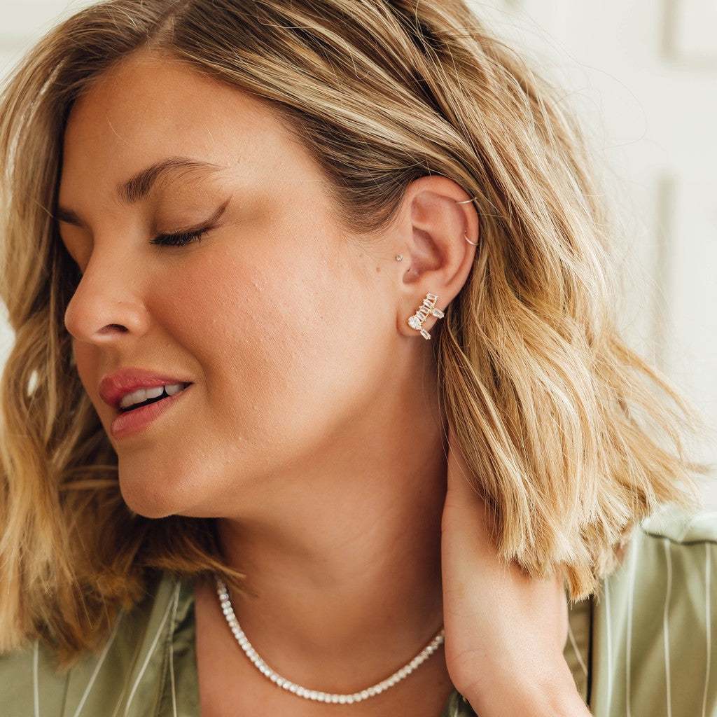 Brinco Mini Ear Cuff Baguetes + Gotinha