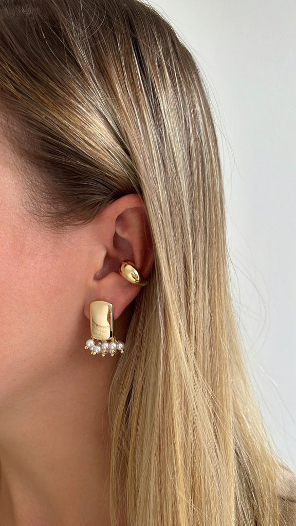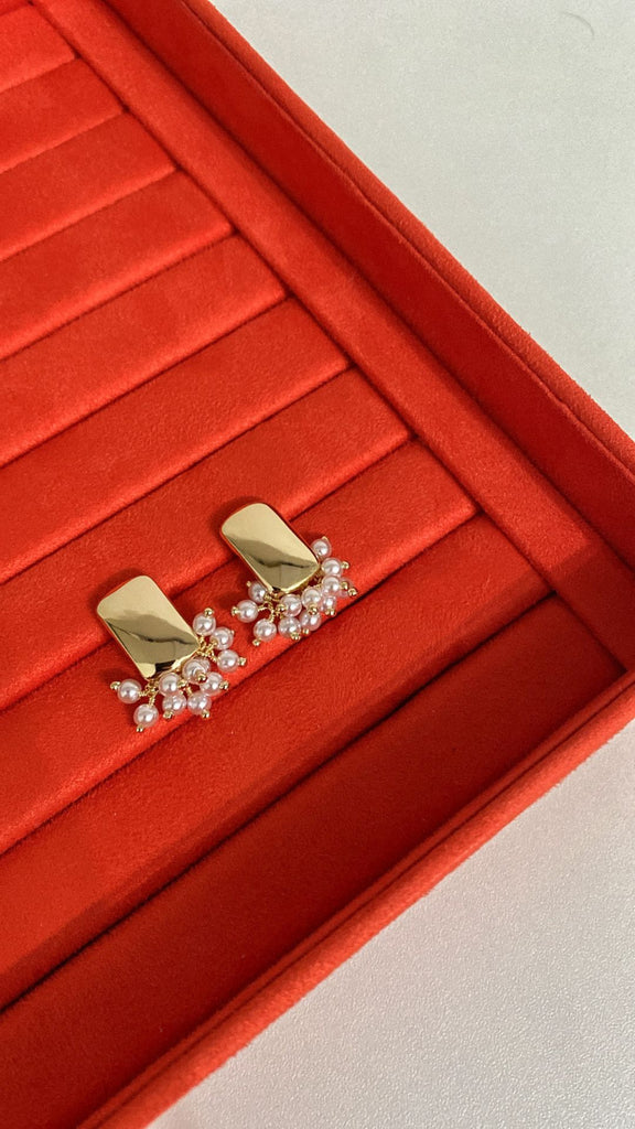 Brinco Retangular Liso Com Pérolas - está em espera e será enviado assim que estiver de volta em estoque