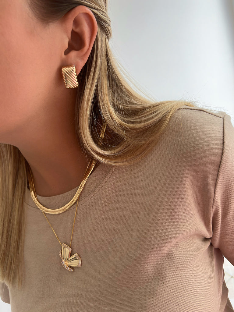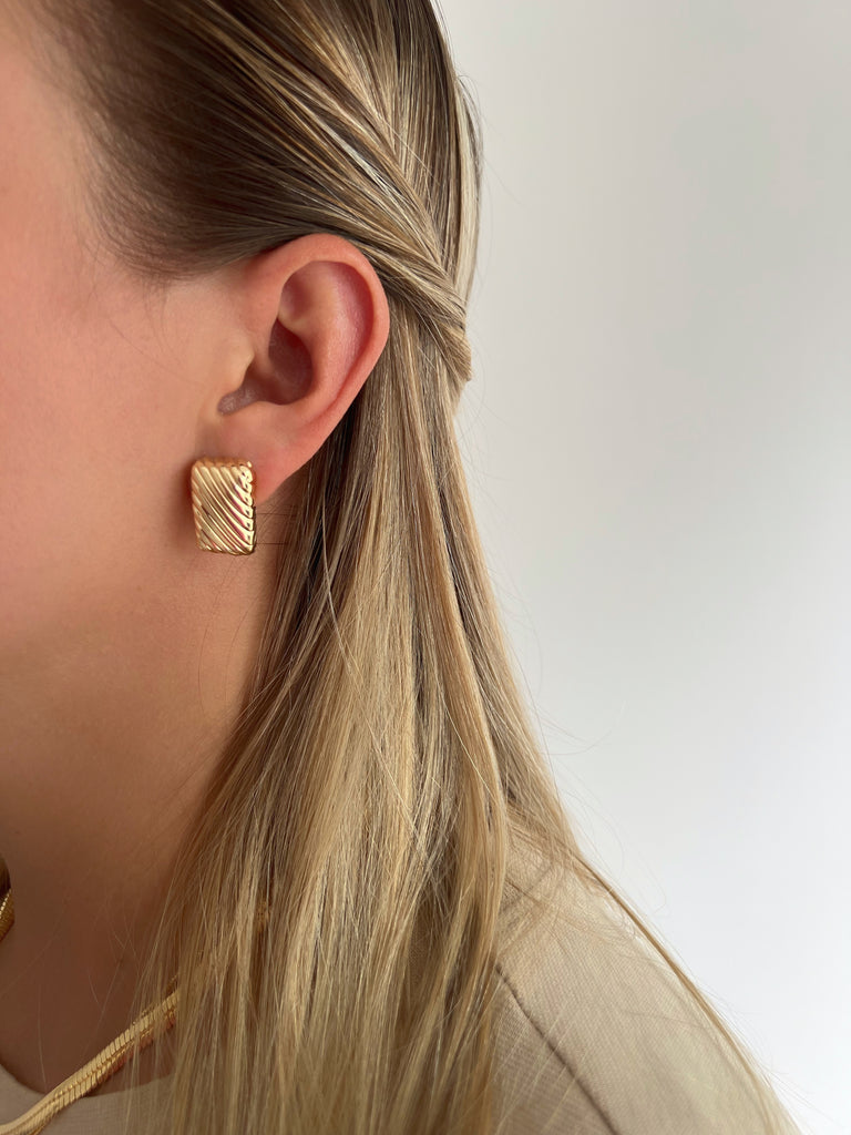 Brinco Retângulo Frisado - está em espera e será enviado assim que estiver de volta em estoque