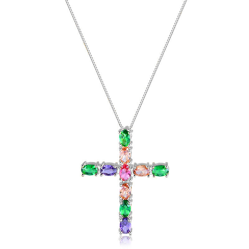 Colar Cruz Zircônias Ovais 45cm - está em espera e será enviado assim que estiver de volta em estoque