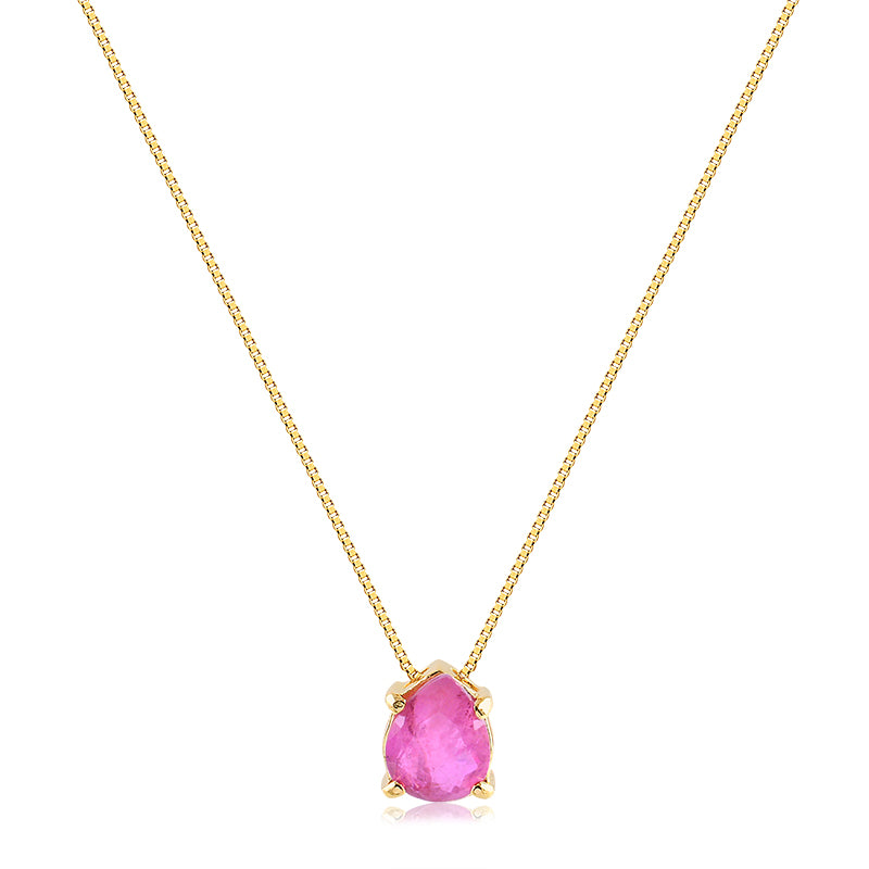 Colar zircônia formato gota de 8x10mm, com comprimento de 45cm e mais 5cm de extensor.