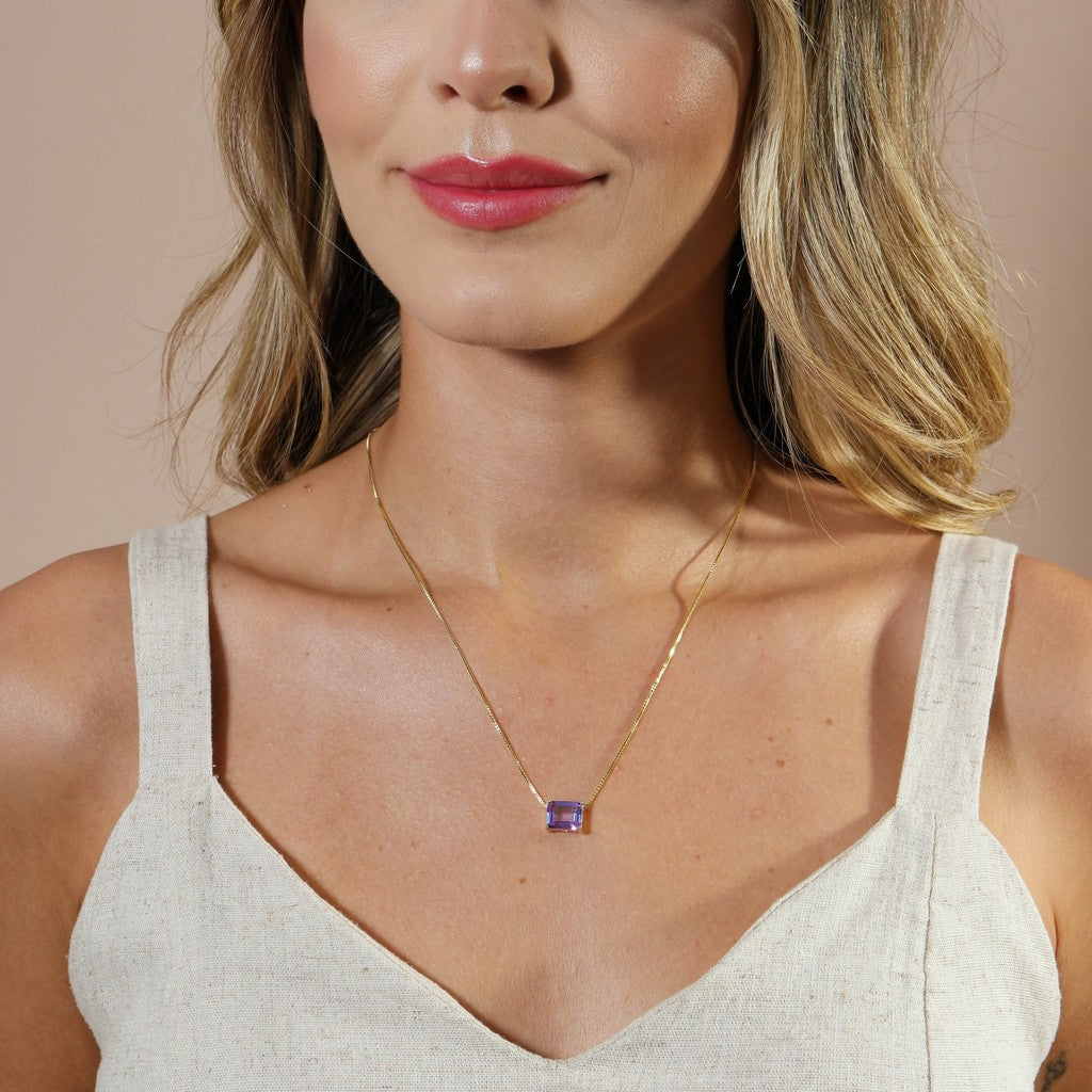 Colar zircônia de lapidação octogonal de 10x8mm, com comprimento de 45cm e mais 5cm de extensor.