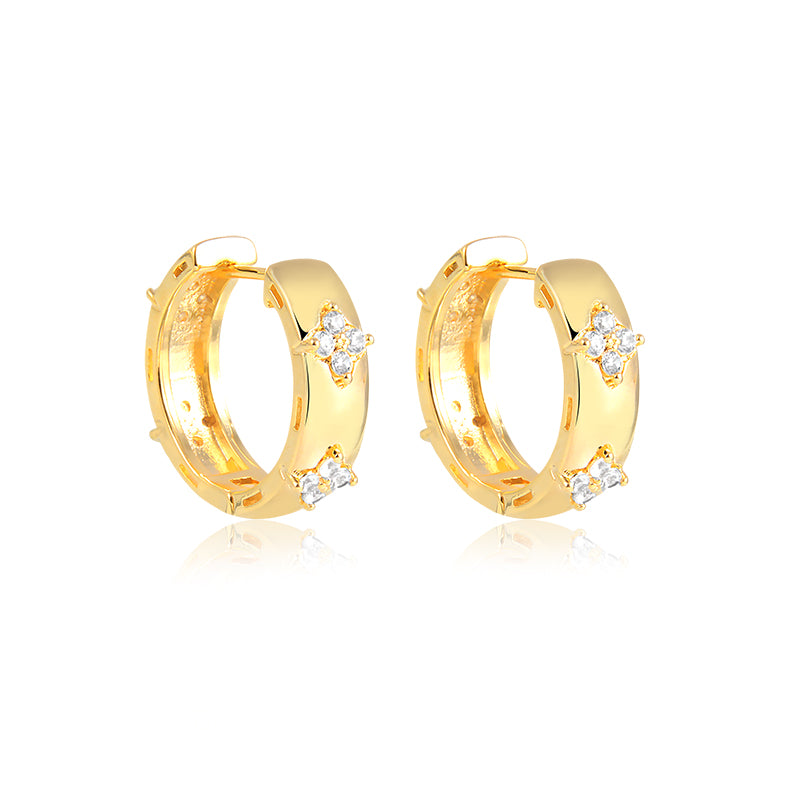 Brinco Argola Trevo Cravejado Em Relevo - M