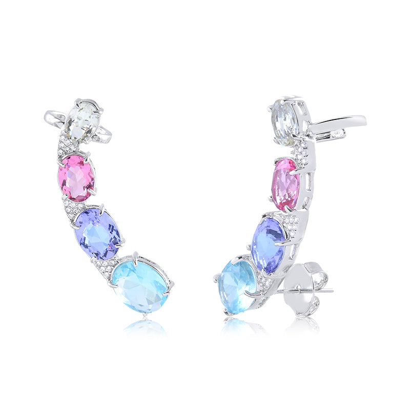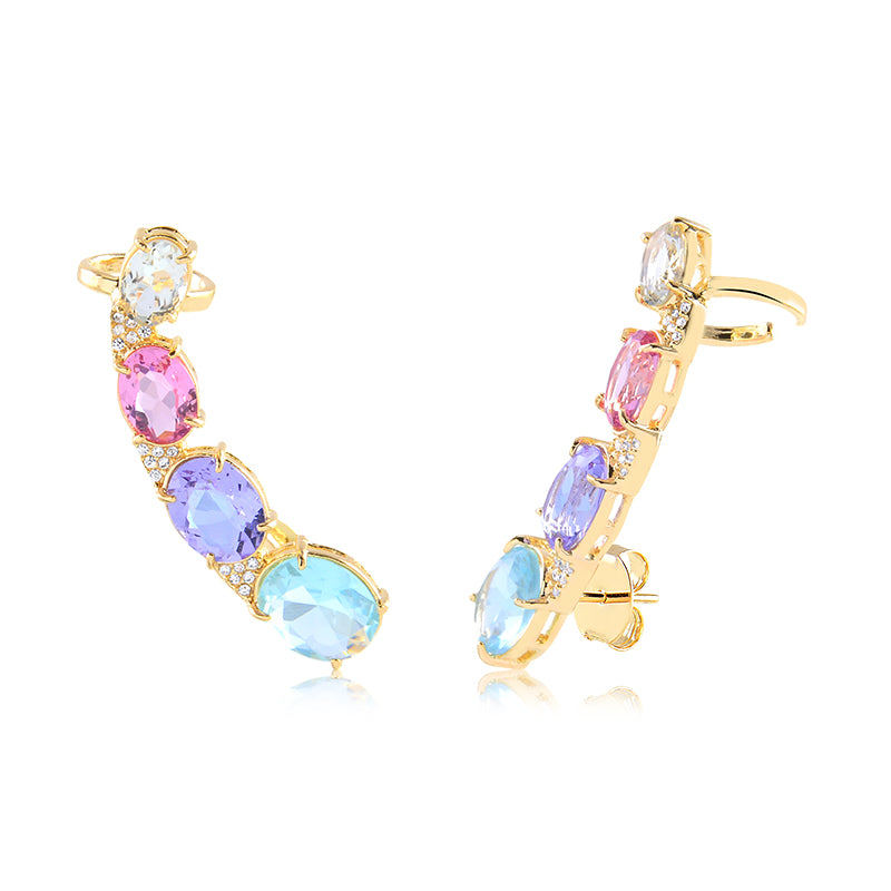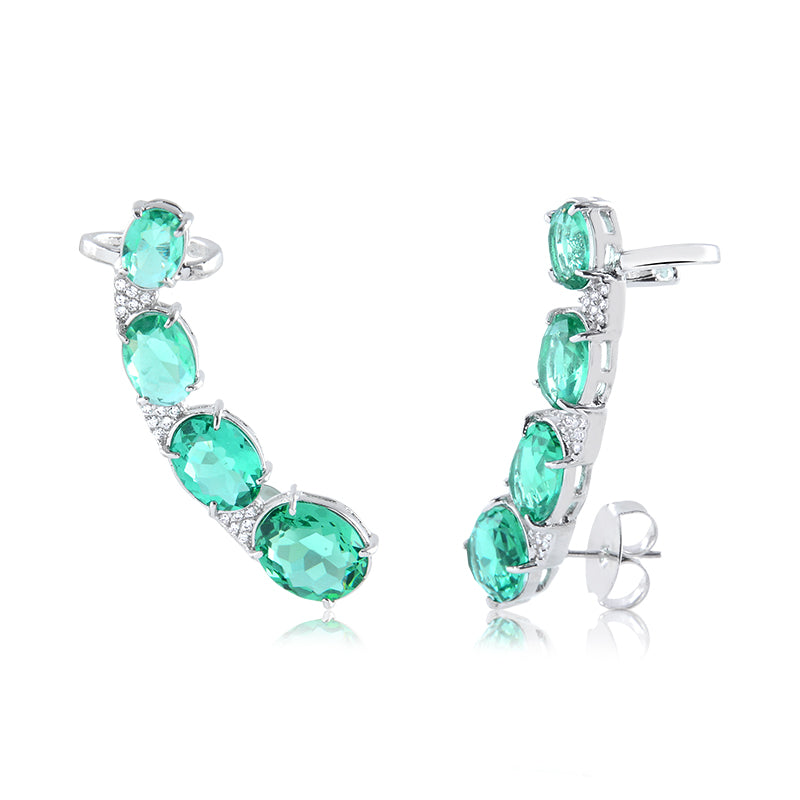 Brinco Ear Cuff Piercing Zircônias Ovais