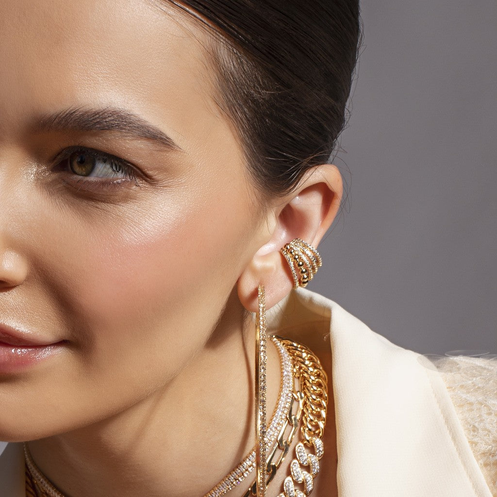 Piercing Fake Quíntuplo Cravado E Bolinhas - está em espera e será enviado assim que estiver de volta em estoque