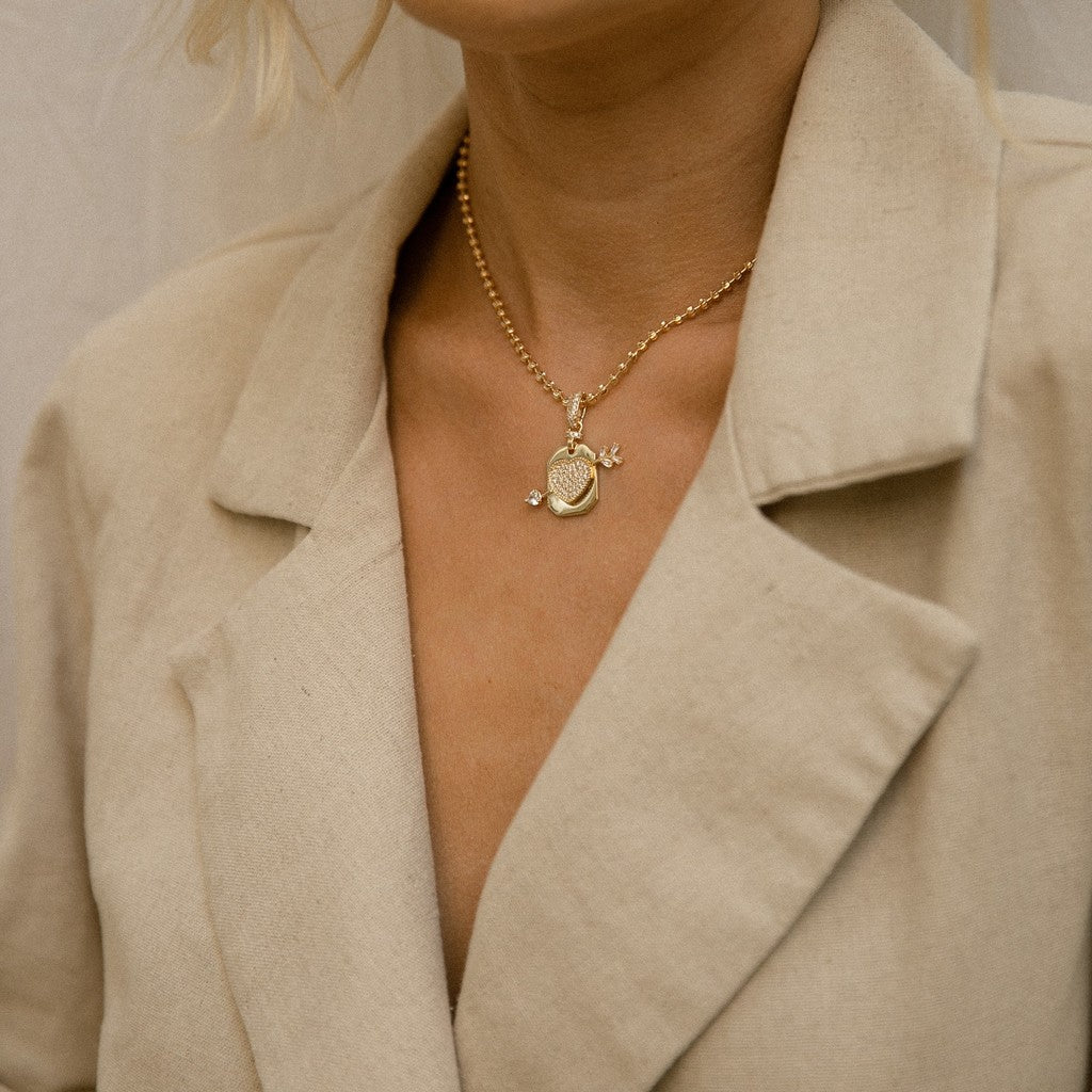 Pingente Medalha Coração Flechado