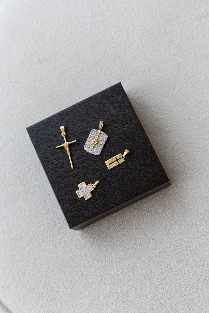 Pingente Medalha Retângular Cravejada Estrela - está em espera e será enviado assim que estiver de volta em estoque
