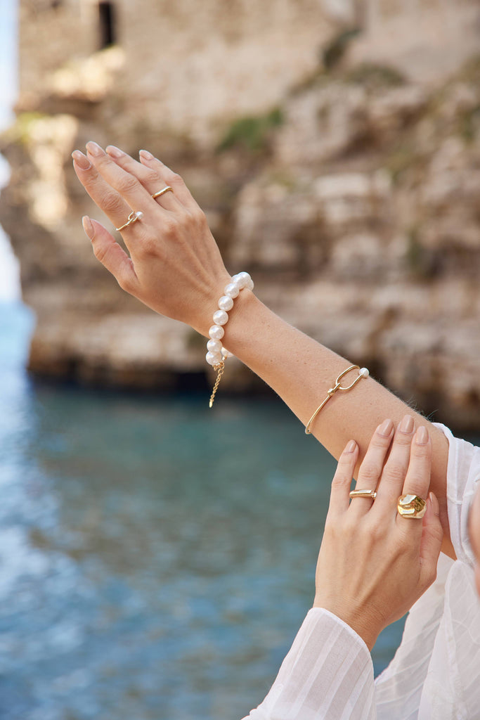 Pulseira Bracelete Encaixe Pérola E Bolinha
