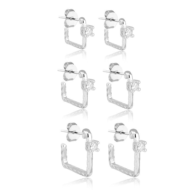 Trio Argolinhas Quadradas Ponto De Luz Trabalhada Lateral (3 Peças) - está em espera e será enviado assim que estiver de volta em estoque