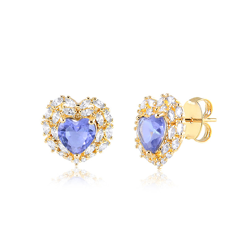 Brinco Coração Cravado Dupla Em Volta Navetes