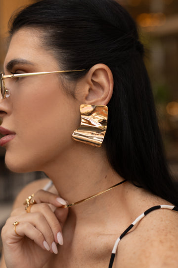 Brinco Maxi Retângulo Amassado Cassie - está em espera e será enviado assim que estiver de volta em estoque