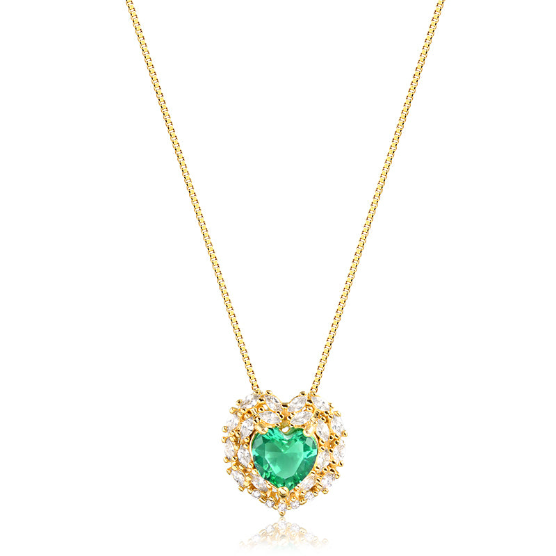 Colar Coração Cravação Dupla Em Volta Navetes 45cm