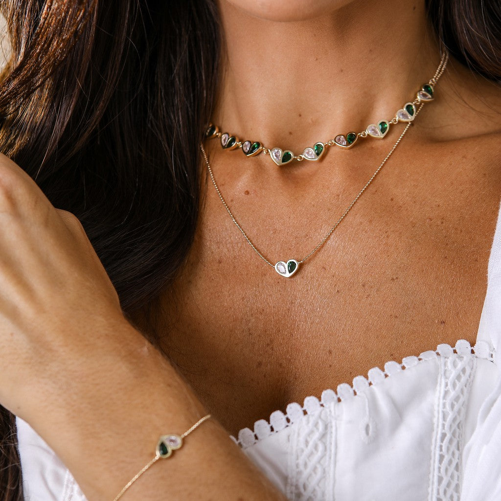 Colar Choker Isa Mini Corações Duo Gotinhas