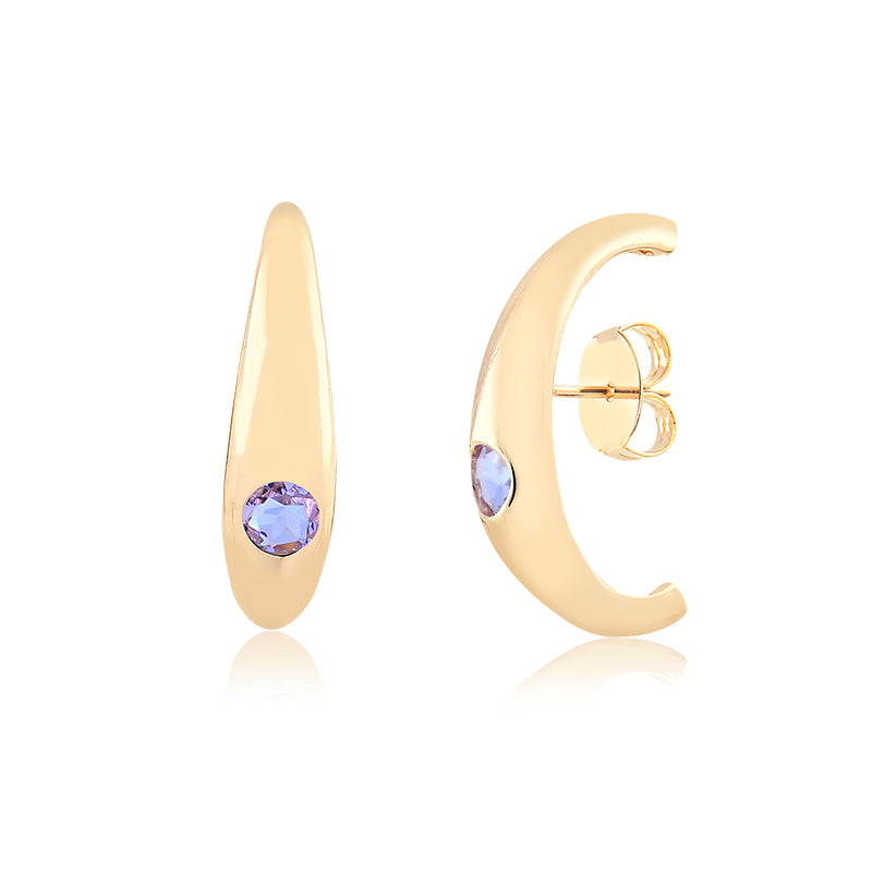 Brinco Ear Hook Abaulado com Zircônia