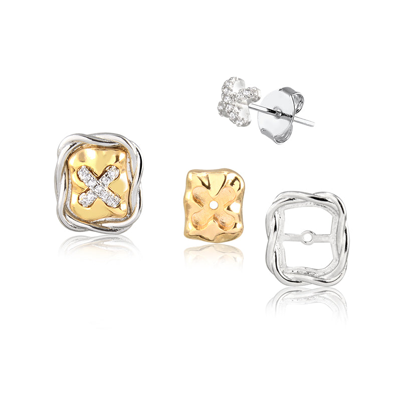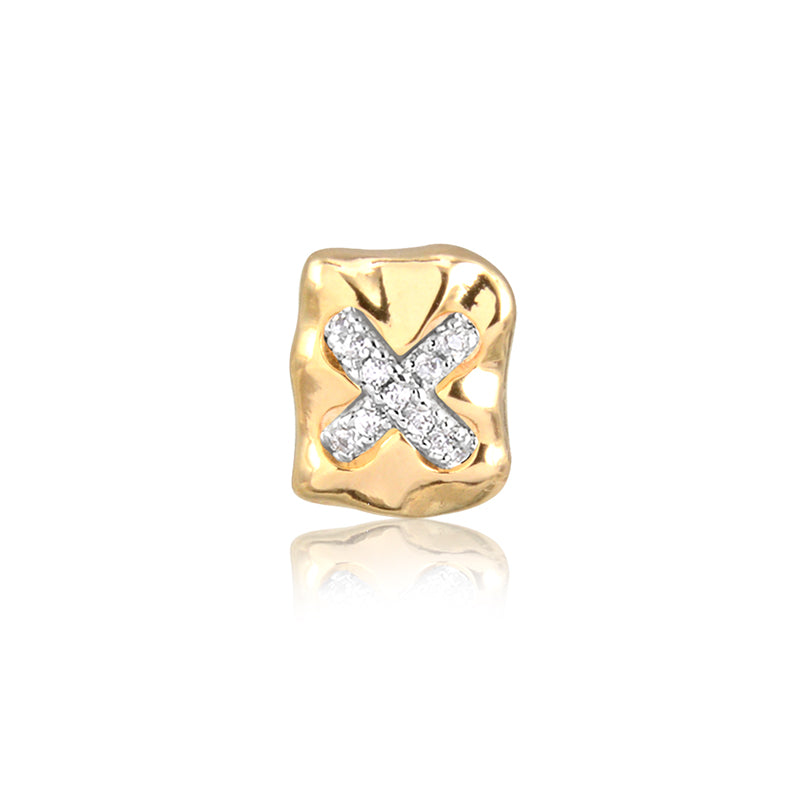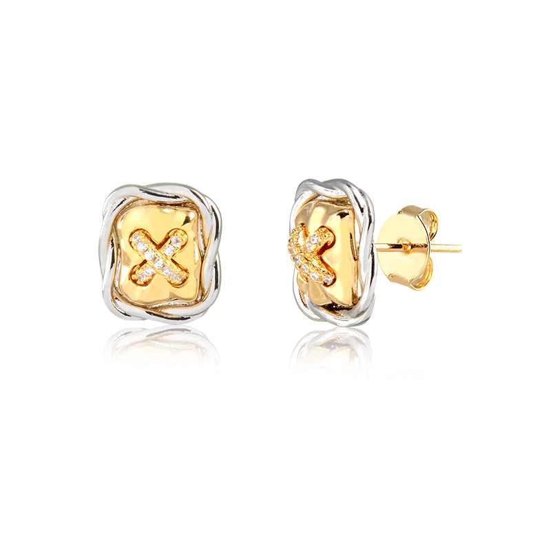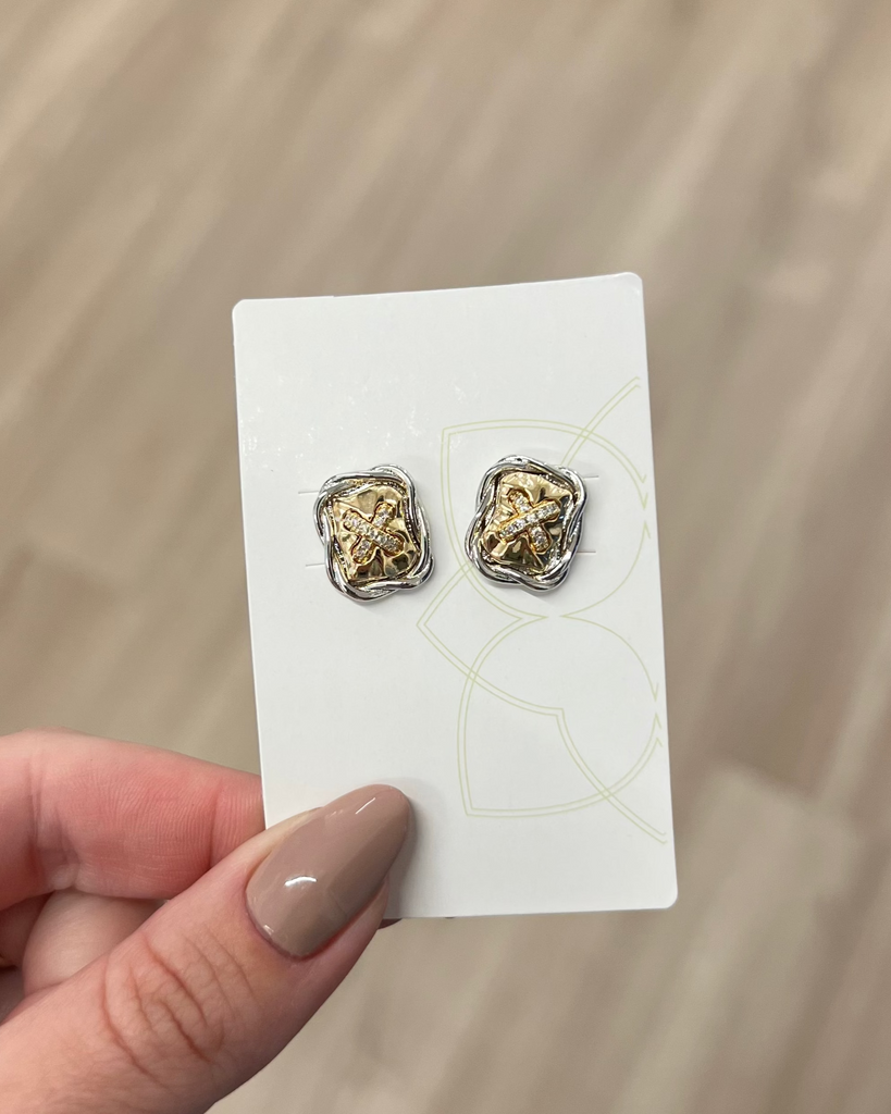 Brinco Retângulo Orgânico Com X Cravejado Duo (3 em 1)