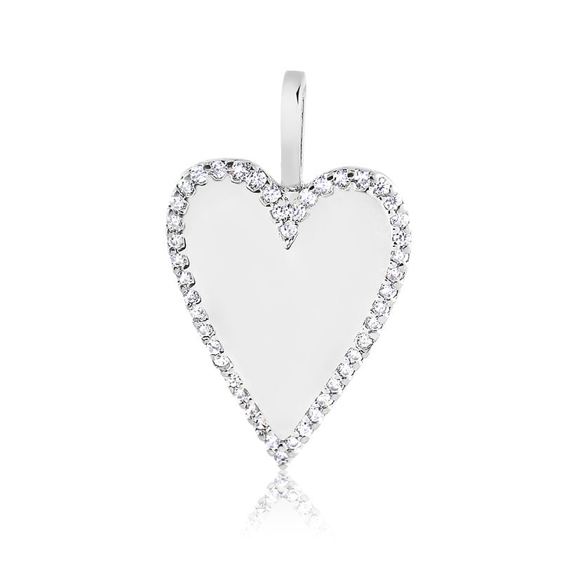 Pingente Coração Longo Liso Cravado em Volta