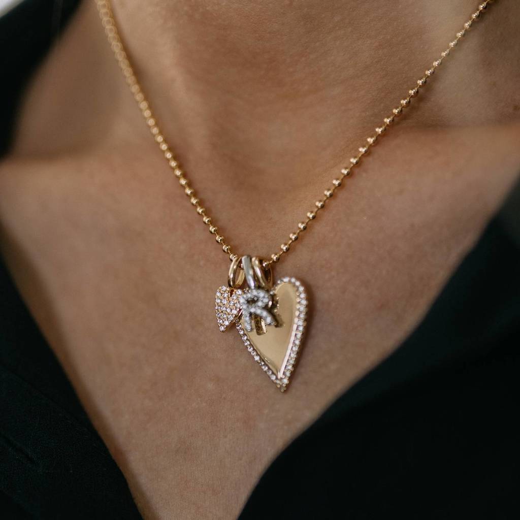 Pingente Coração Longo Liso Cravado em Volta - está em espera e será enviado assim que estiver de volta em estoque
