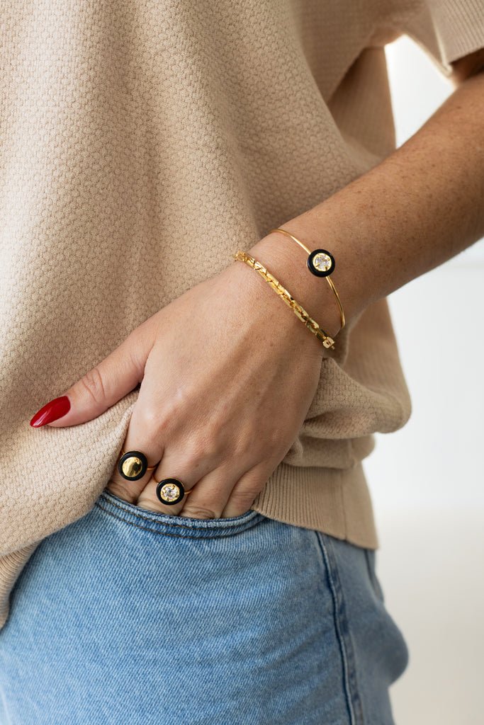 Bracelete Amour Redondo Resinado Preto Zirconia