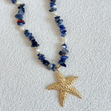 Colar Cascalho E Pérola Estrela Do Mar 40cm